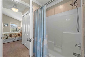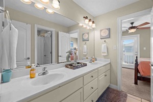 🛁 Shared Jack-and-Jill bathroom with private tub/shower & toilet room and two vanities