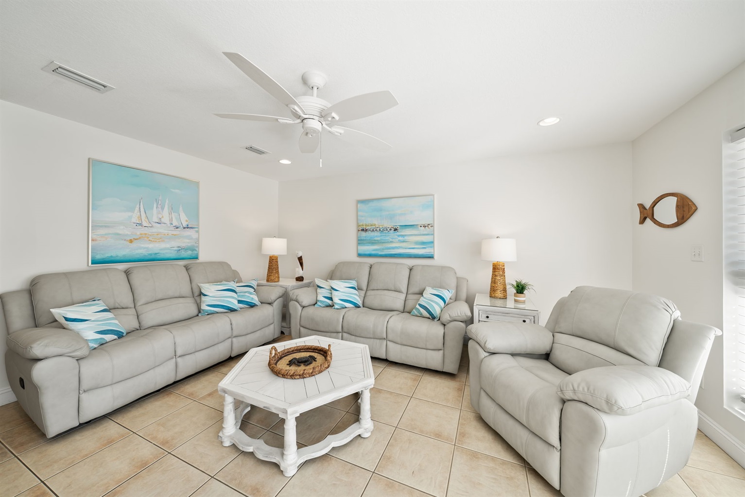 🛋 Spacious living room with 2 sofas, 4 reclining seats, plus a comfy recliner